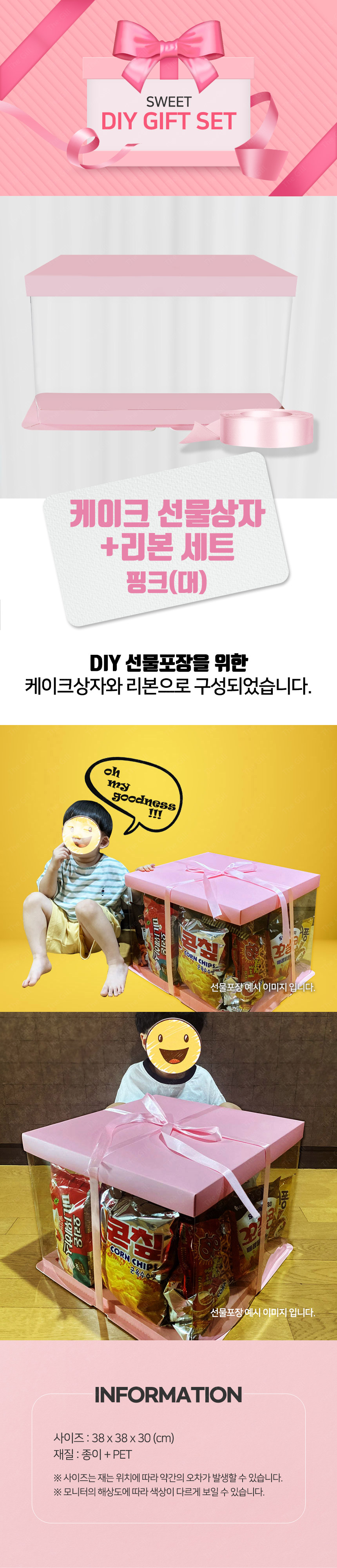케이크 선물상자+리본 세트_핑크(대)