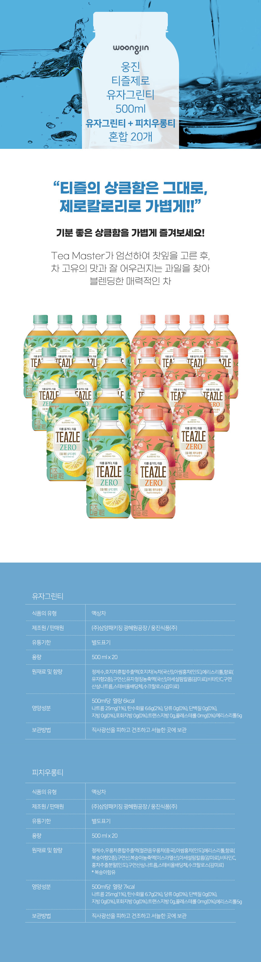 웅진 티즐제로 500ml 유자그린티 + 피치우롱티 혼합 20개