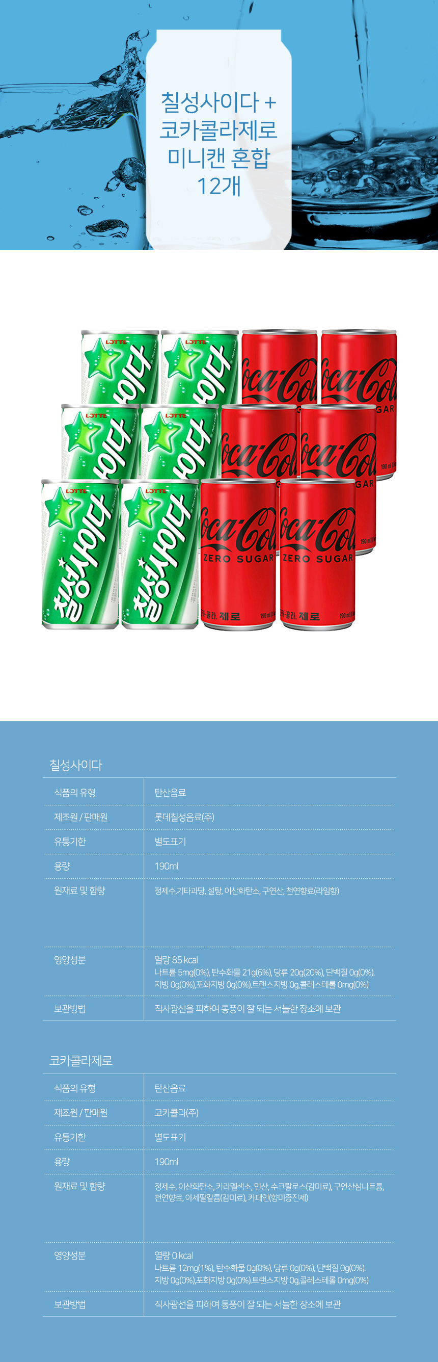 칠성사이다 + 코카콜라제로 미니캔 혼합 12개