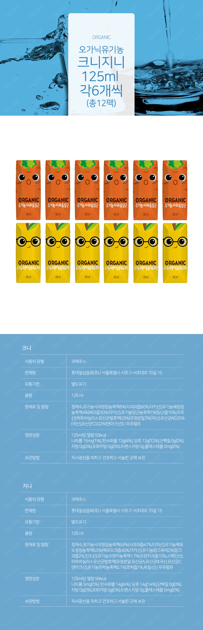 오가닉유기농 크니지니125ml 각6개씩 (총12팩)