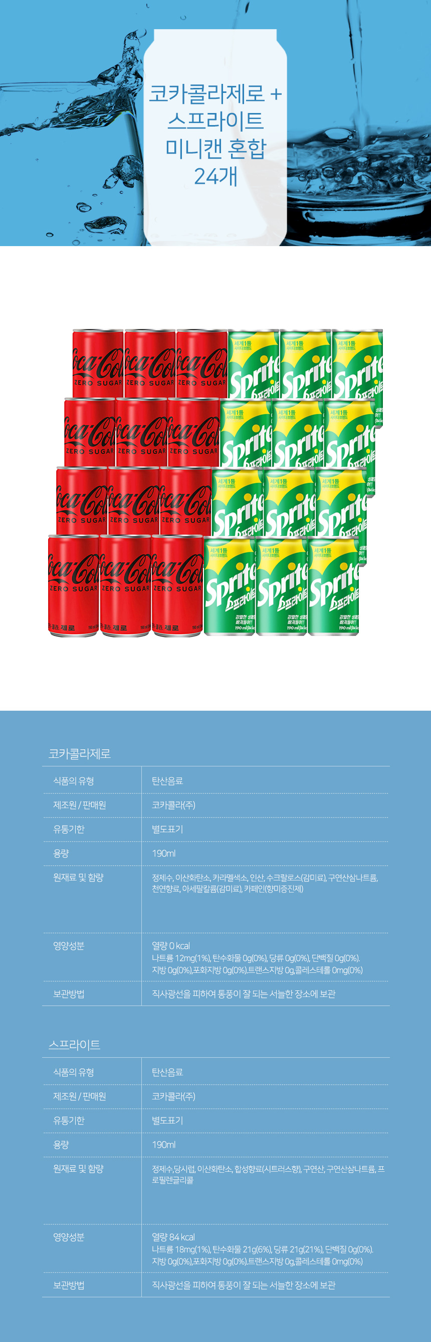 코카콜라제로 + 스프라이트 미니캔 혼합 24개