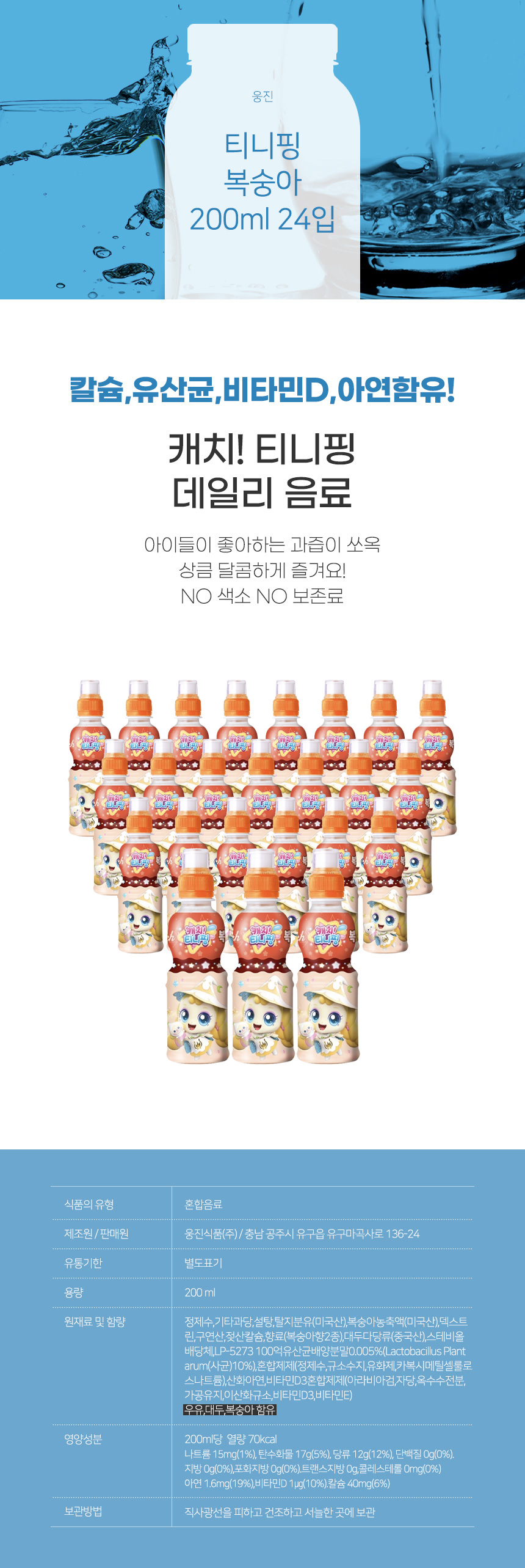 웅진 티니핑 복숭아 200ml 24입