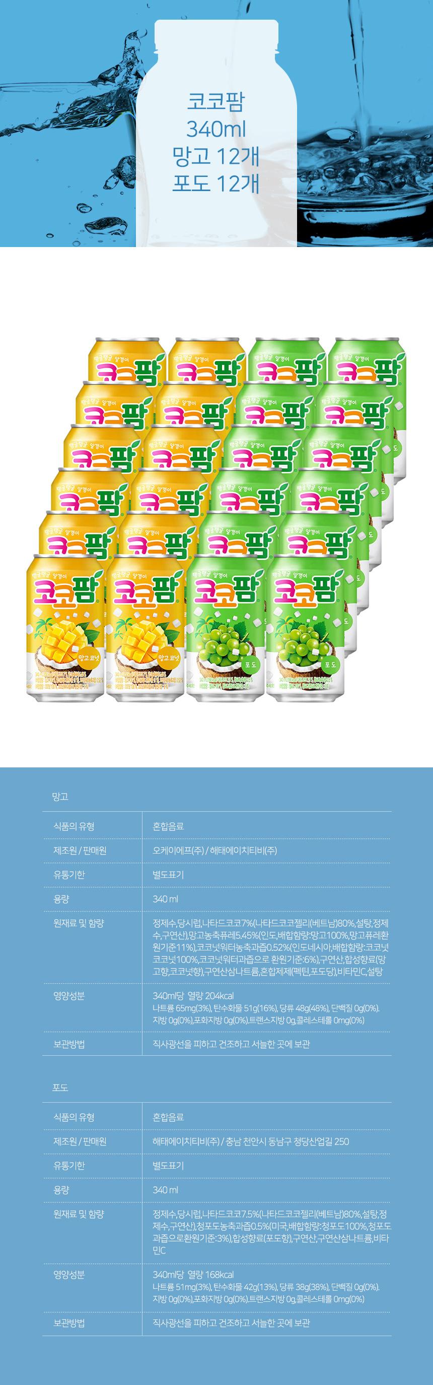 해태 코코팜 340ml 망고 + 포도 혼합 24개