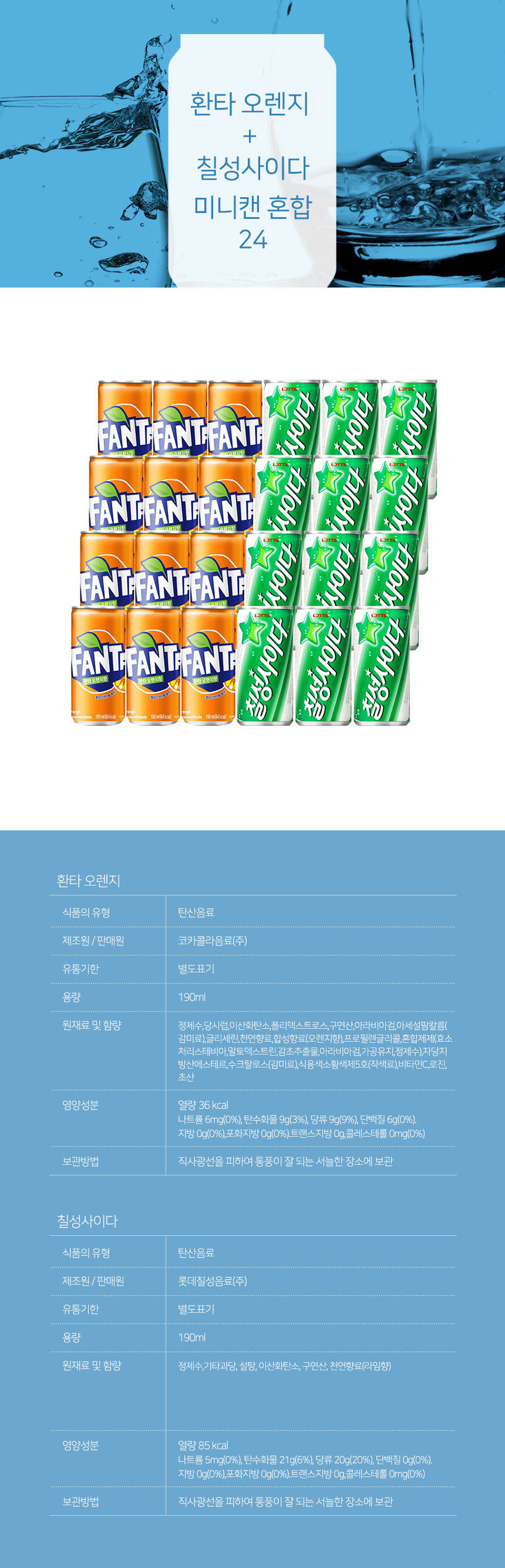 환타 오렌지 + 칠성사이다 미니캔 혼합 24개