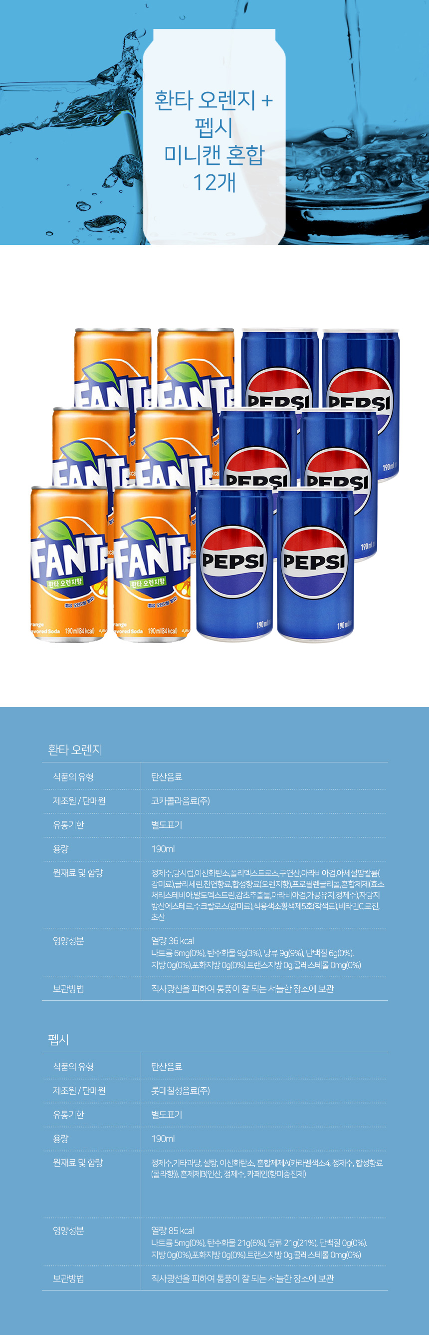 환타 오렌지 + 펩시 미니캔 혼합 12개