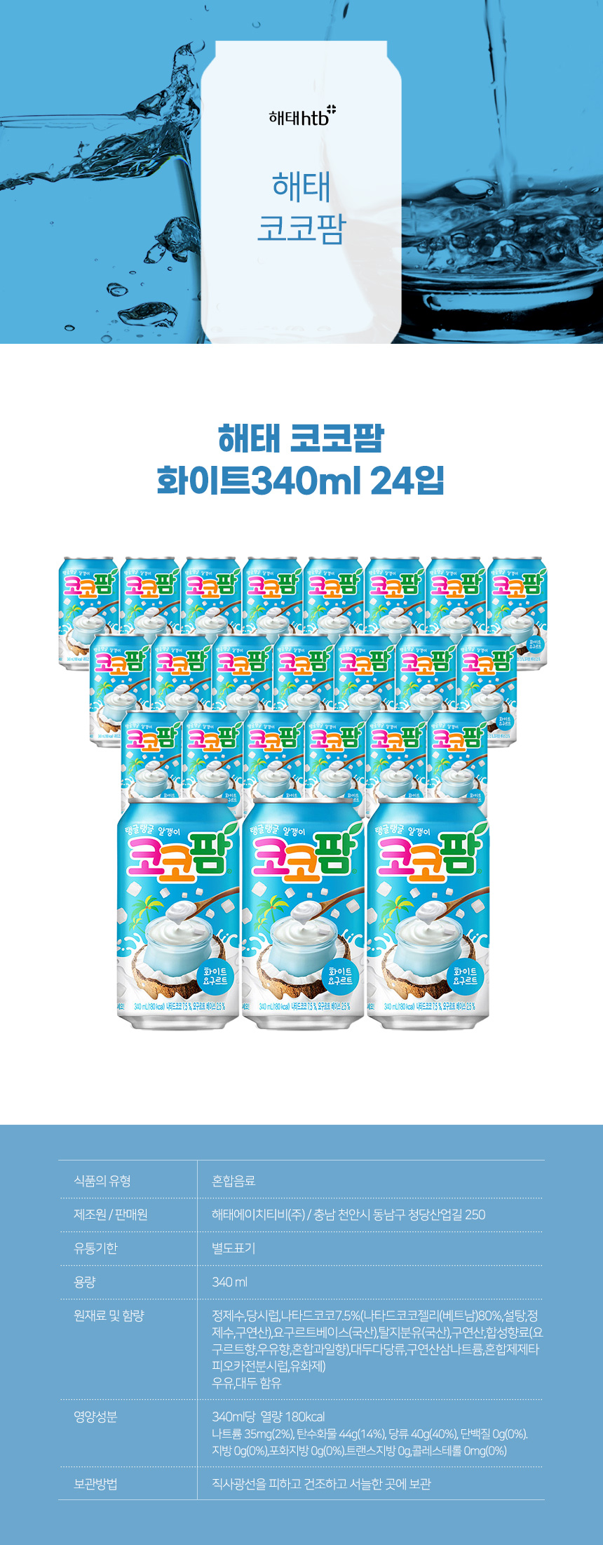 해태 코코팜 화이트 340ml 24입