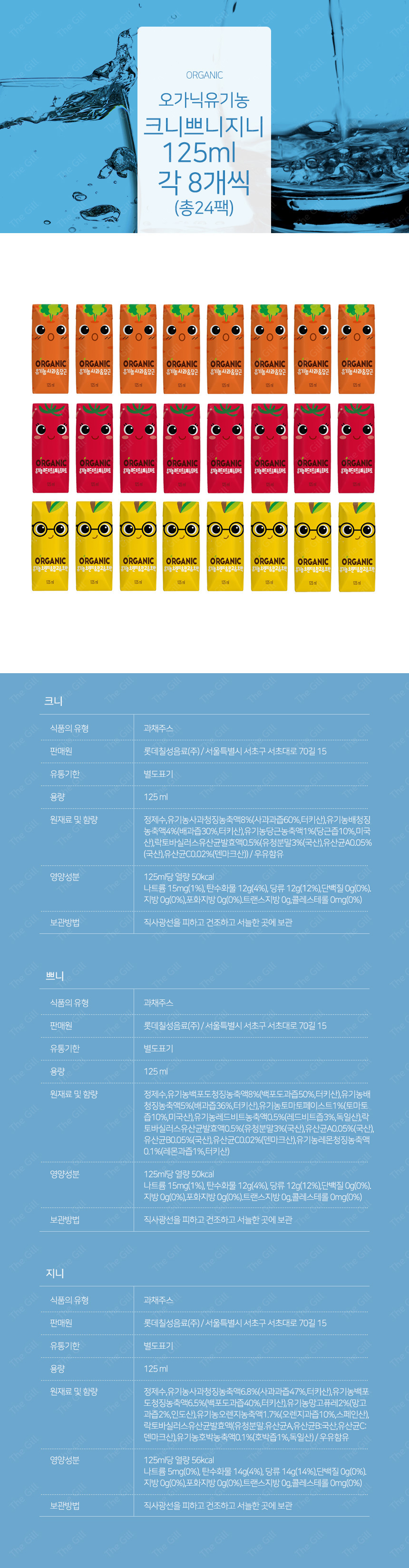 오가닉유기농 크니쁘니지니125ml 각8개씩 (총24팩)
