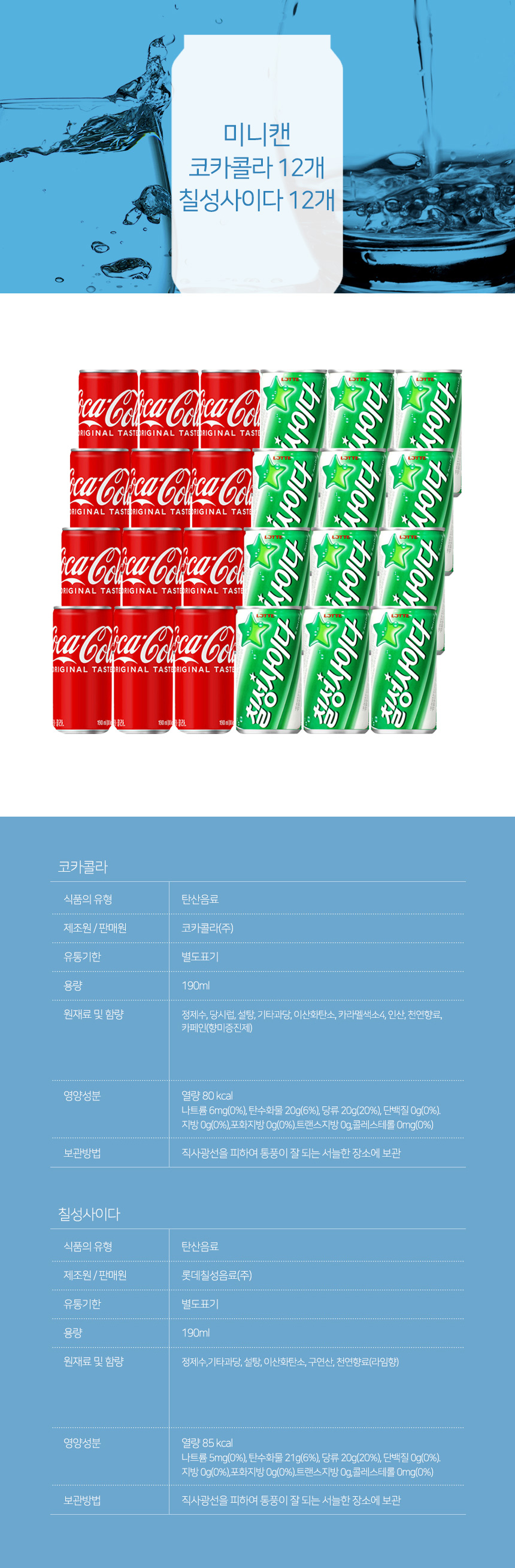 코카콜라 + 칠성사이다 미니캔 혼합 24개