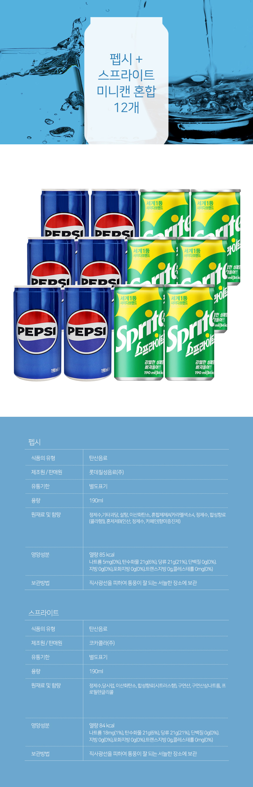 펩시 + 스프라이트 미니캔 혼합 12개