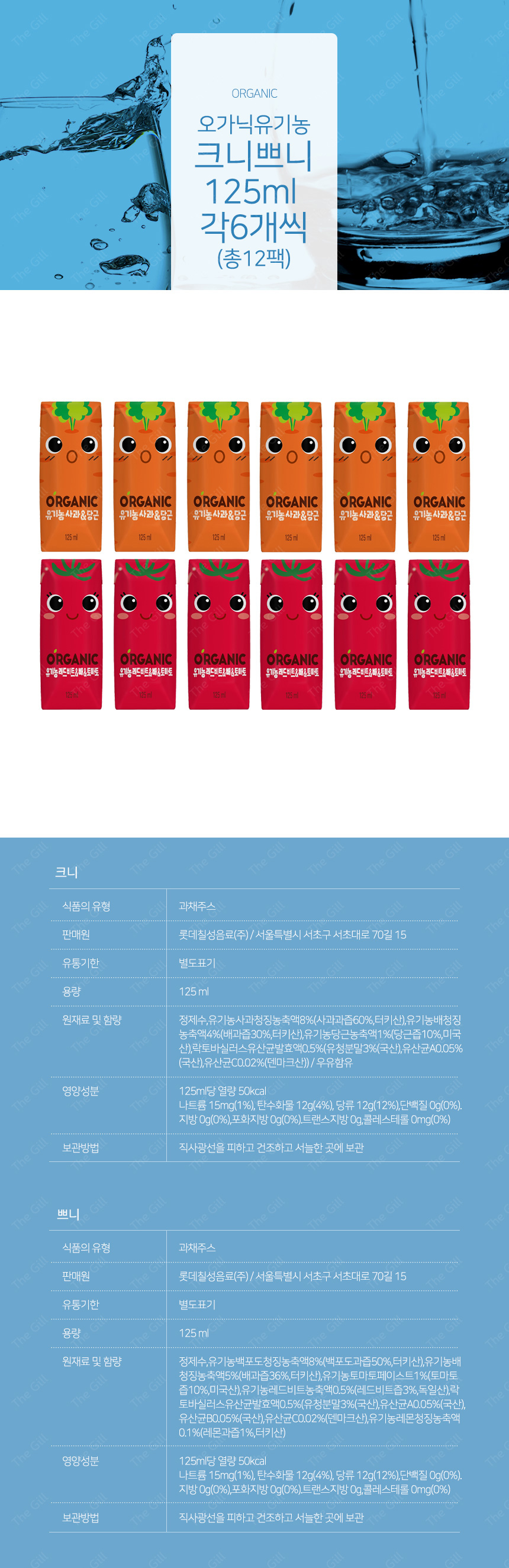 오가닉유기농 크니쁘니125ml 각6개씩 (총12팩)