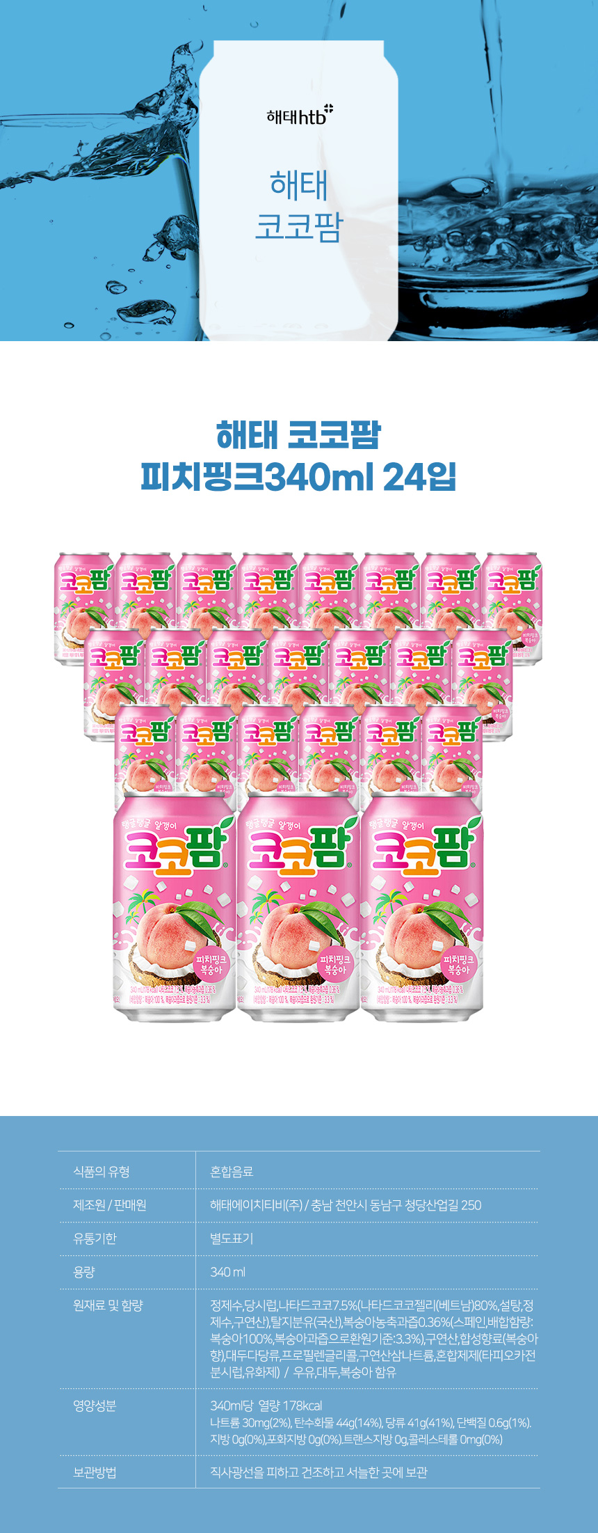 해태 코코팜 피치핑크 340ml 24입