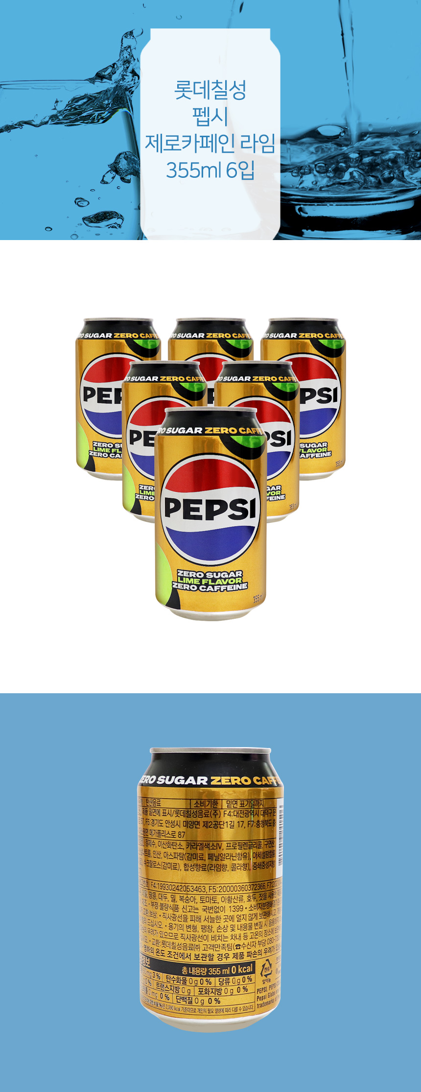 롯데칠성 펩시 제로카페인 라임 355ml 6입