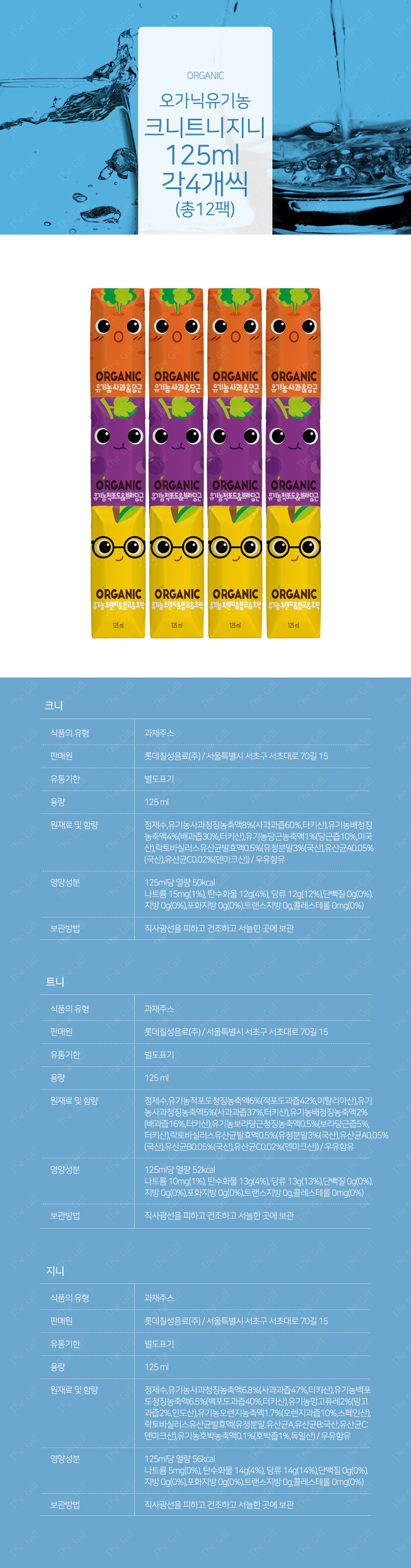 오가닉유기농 크니트니지니125ml 각4개씩 (총12팩)