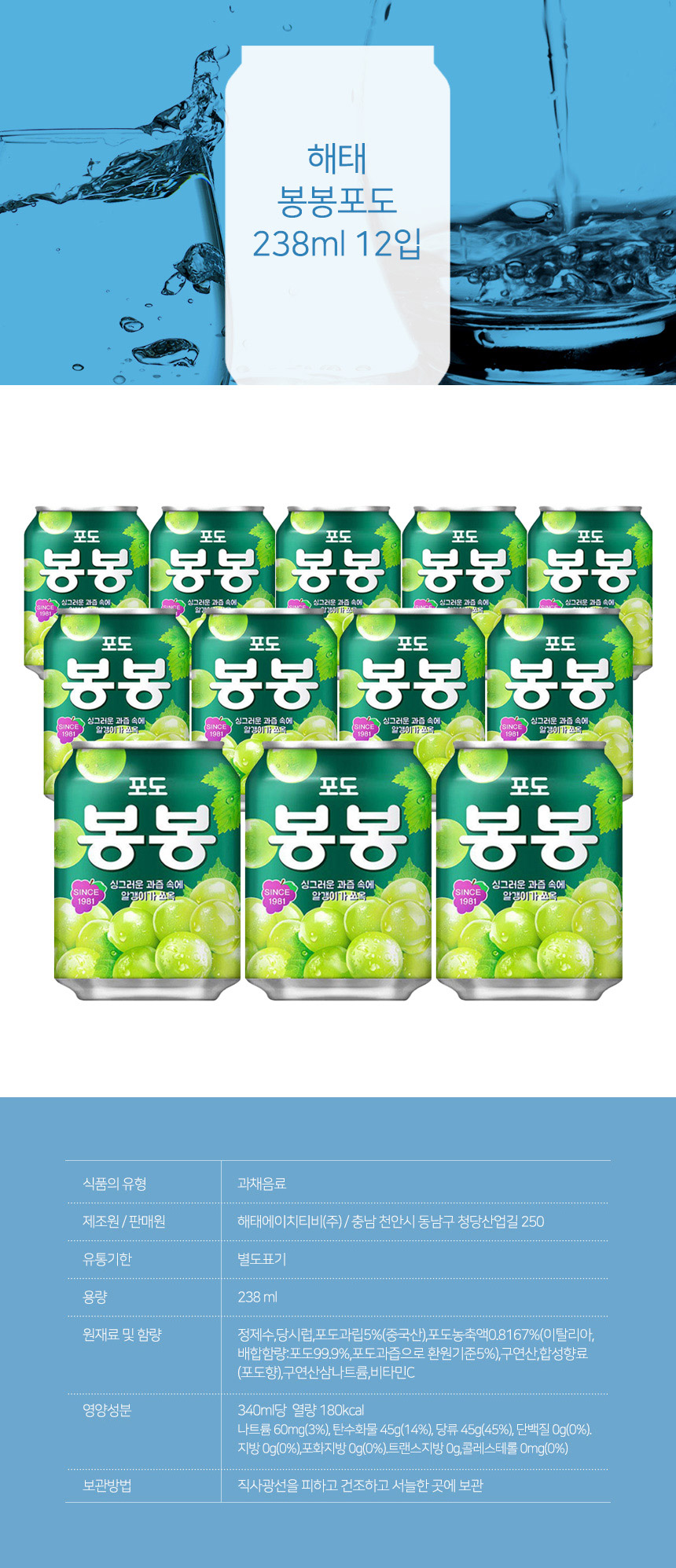 해태 봉봉포도 238ml 12입