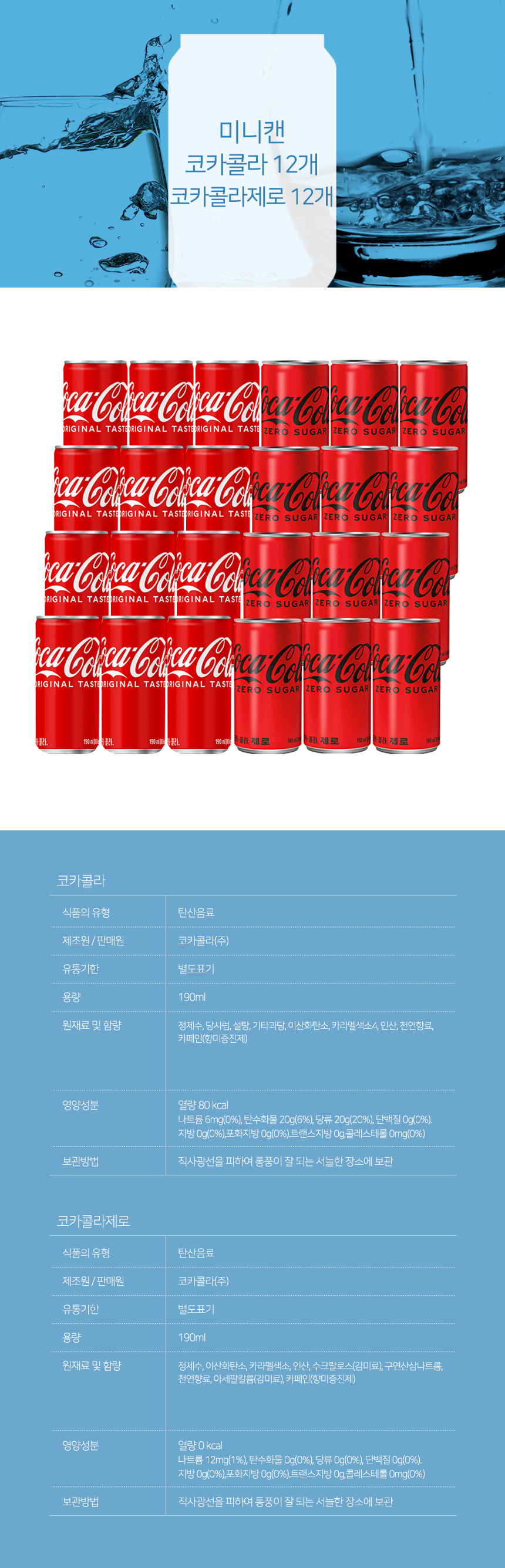 코카콜라 + 코카콜라제로 미니캔 혼합 24개