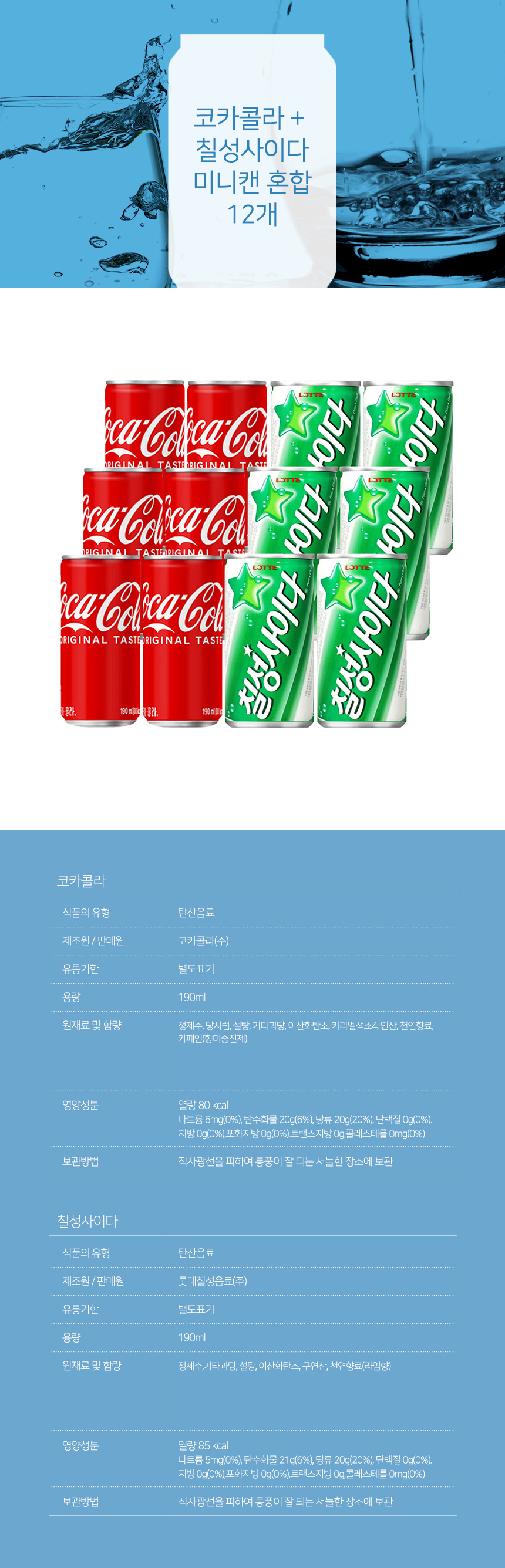 코카콜라 + 칠성사이다 미니캔 혼합 12개