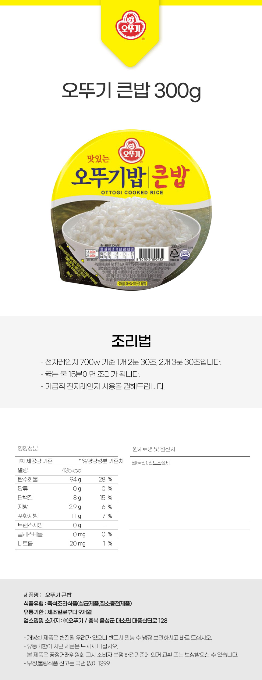 오뚜기 큰밥 300g
