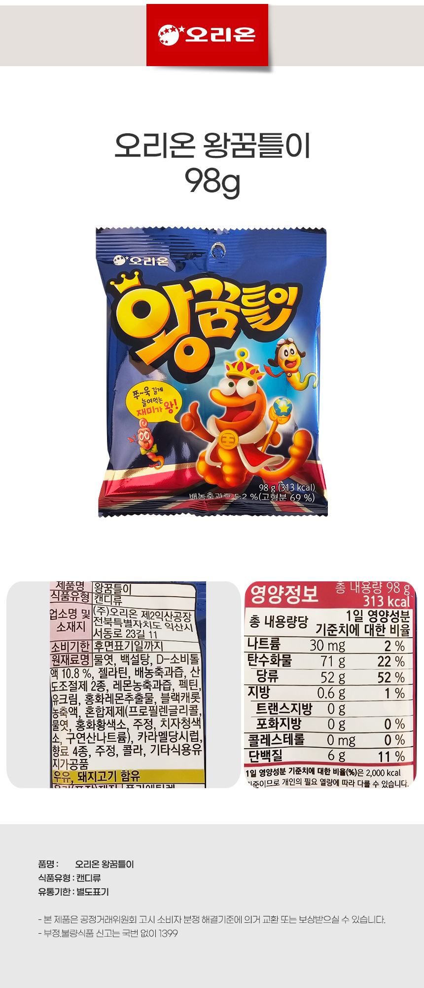 오리온 왕꿈틀이 80g