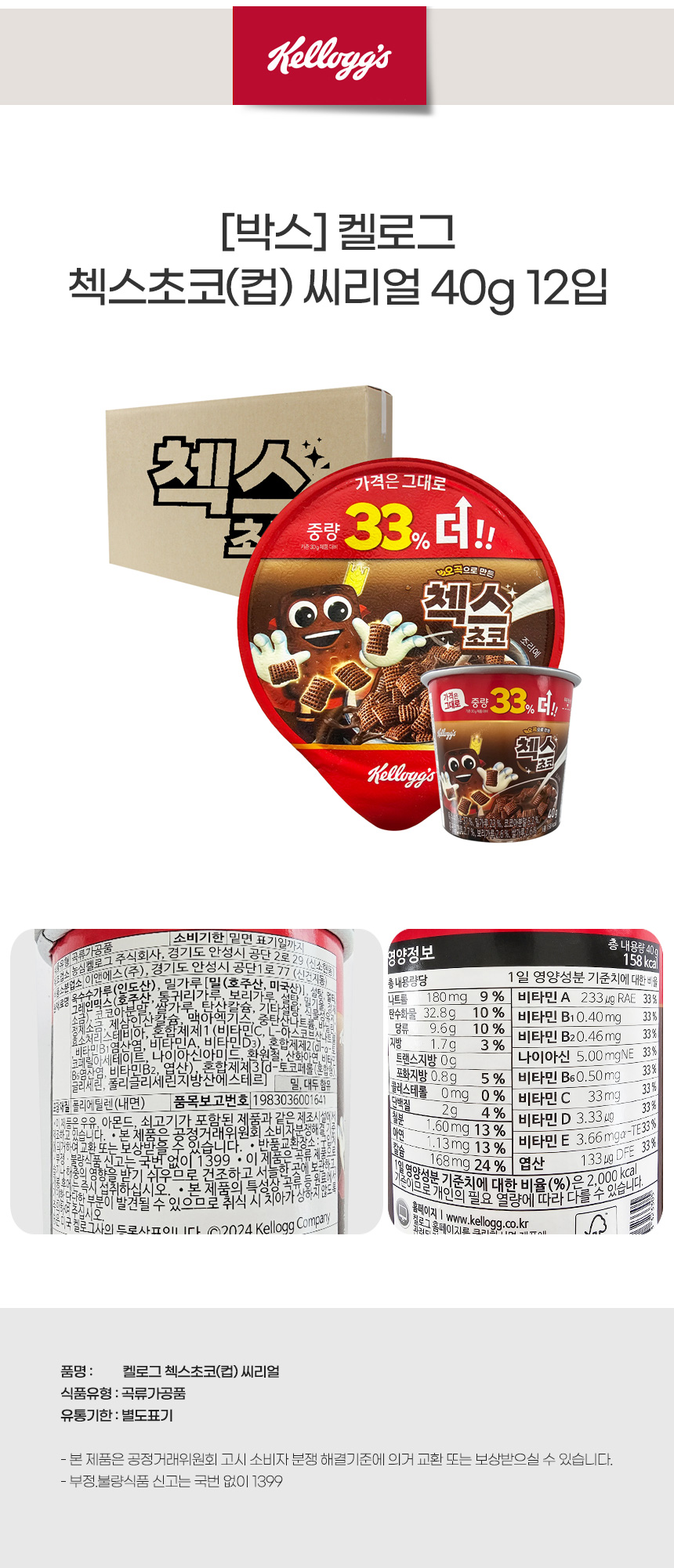 [박스]켈로그 첵스초코(컵) 씨리얼 40g 12입