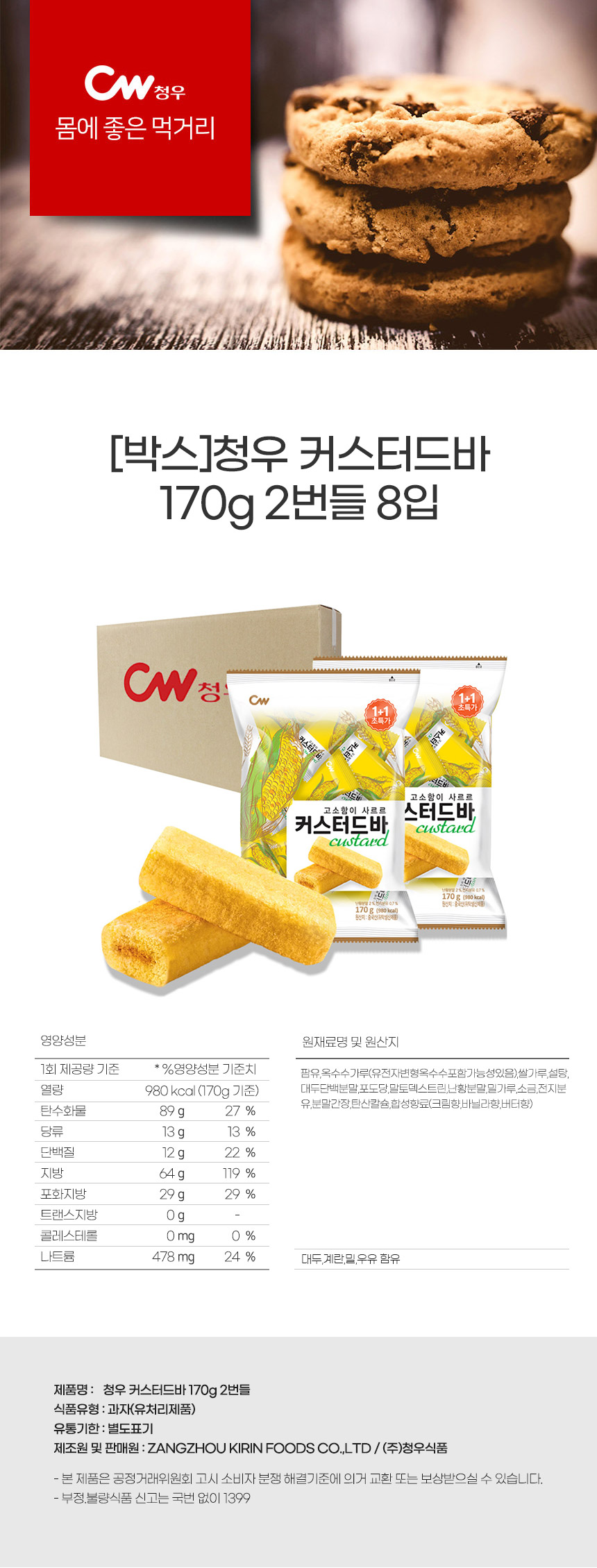 [박스]청우 커스터드바 170g 2번들 8입