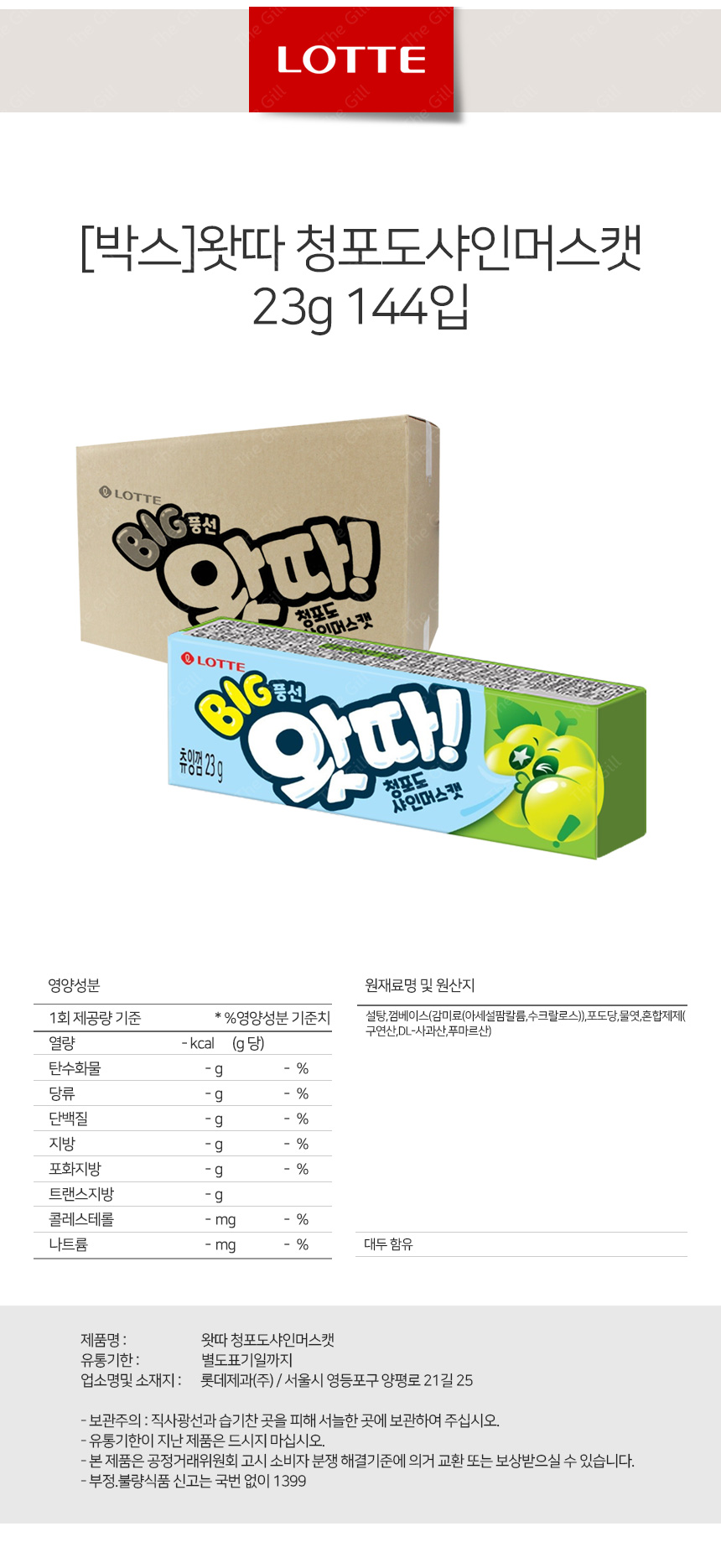 [박스] 롯데 왓따 청포도 샤인머스캣 23g 144입