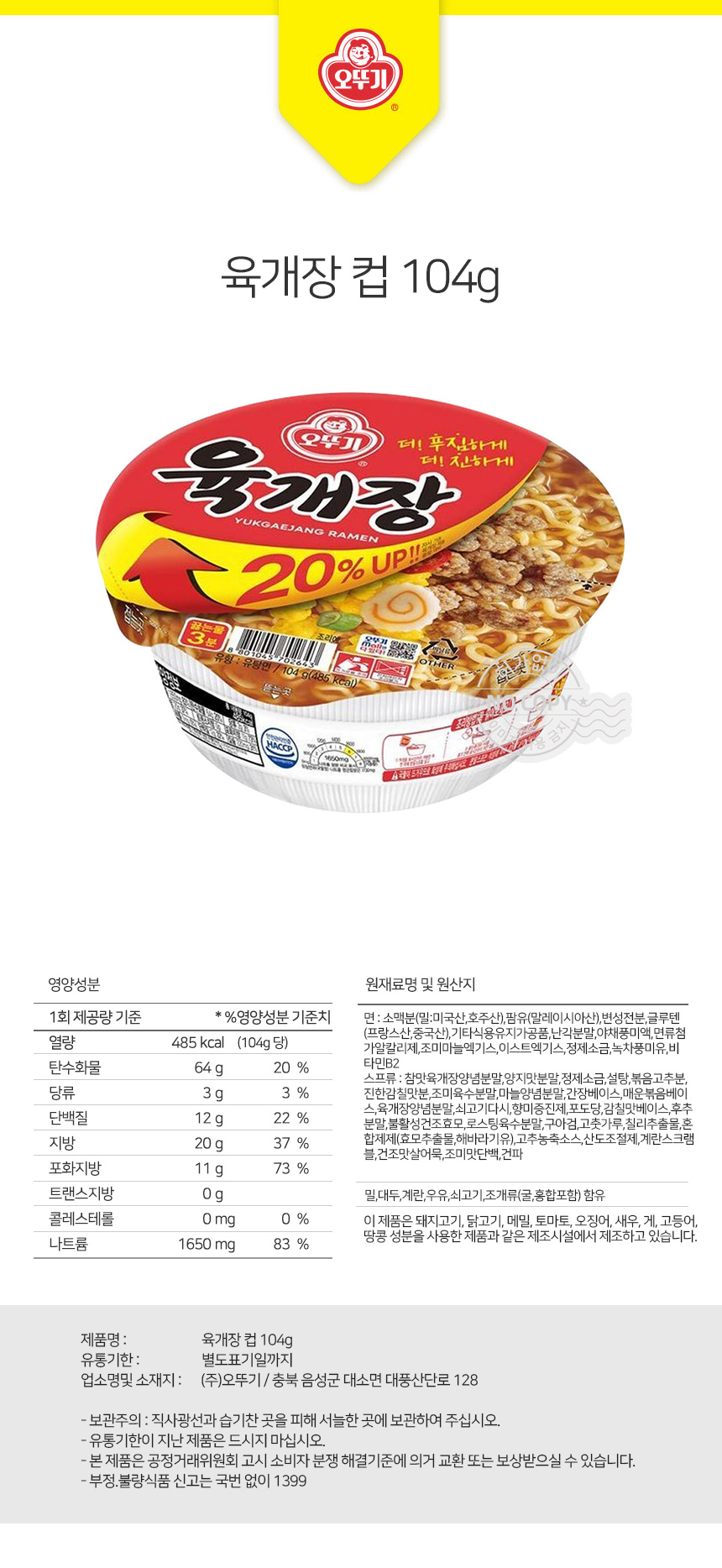 오뚜기 육개장 (용기) 104g