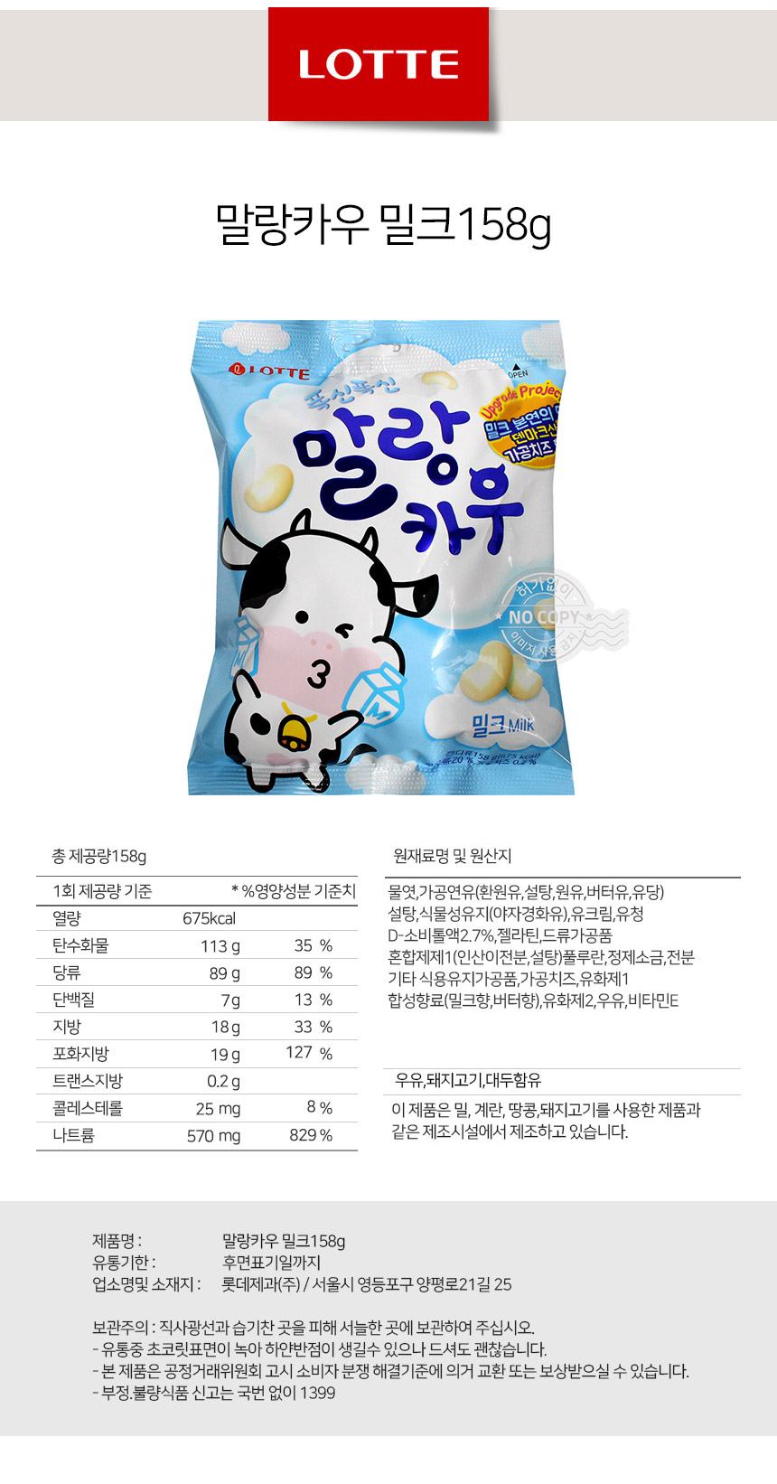 롯데 말랑카우 밀크 158g
