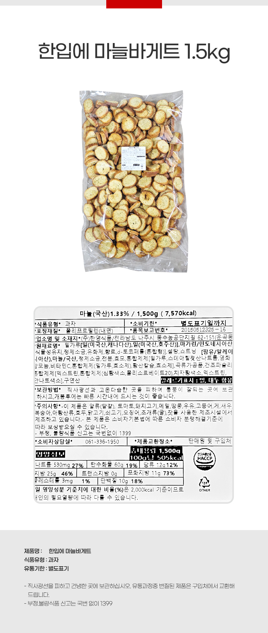 한입에 마늘바게트 1.5kg