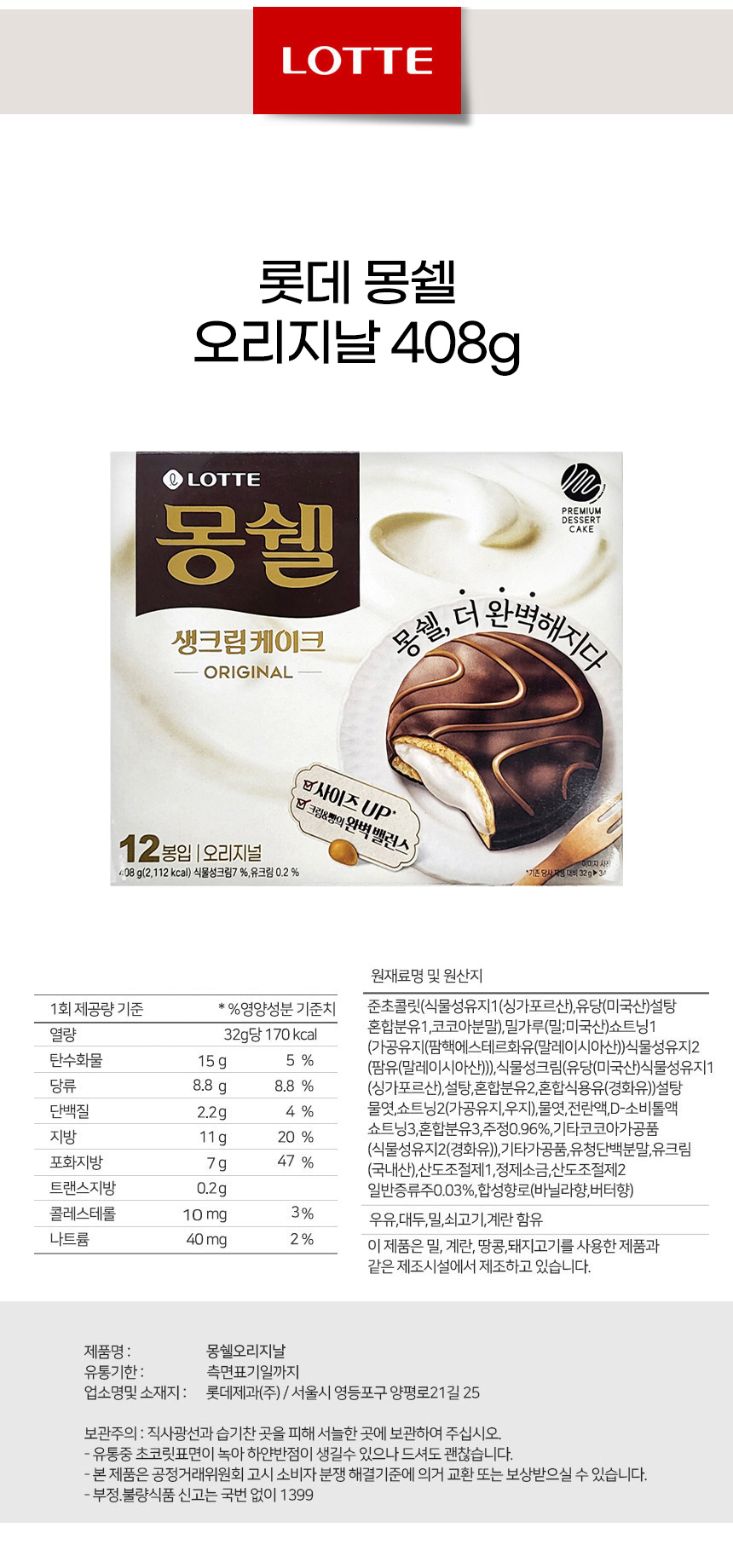 롯데 몽쉘 오리지날 408g