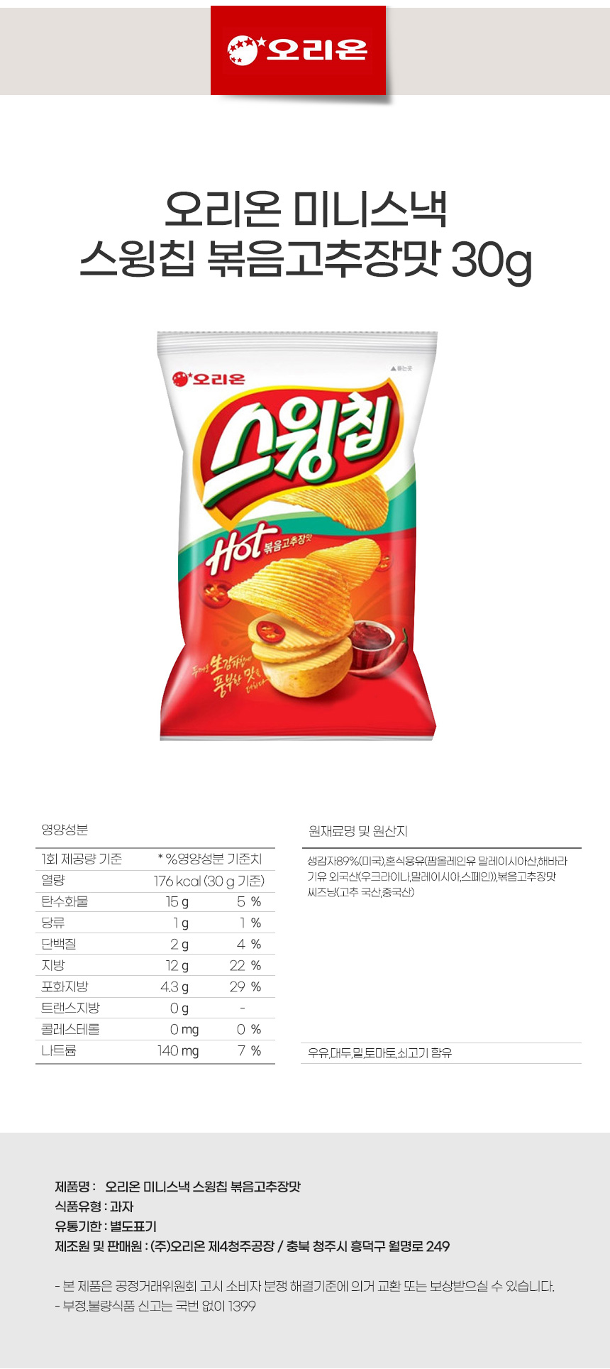오리온 미니스낵 스윙칩 볶음고추장맛 30g