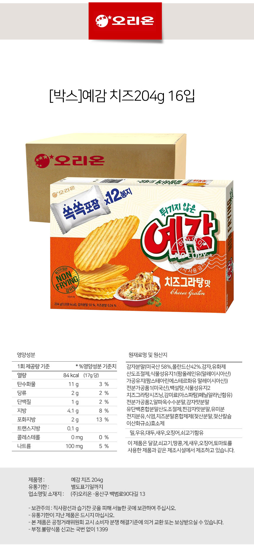 [박스] 오리온 예감 치즈그라탕 204g 16입