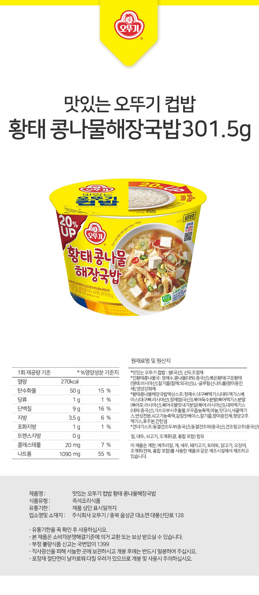 오뚜기 컵밥 황태콩나물 해장국밥 301.5g