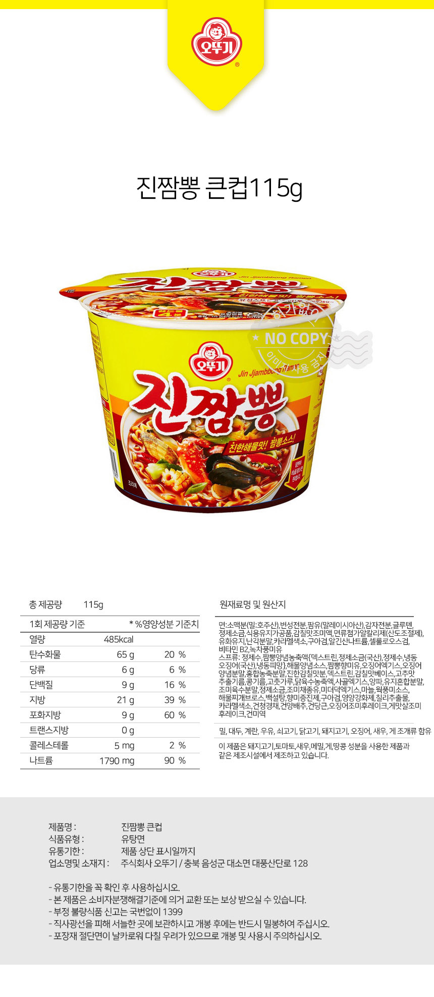 오뚜기 진짬뽕 큰컵 115g