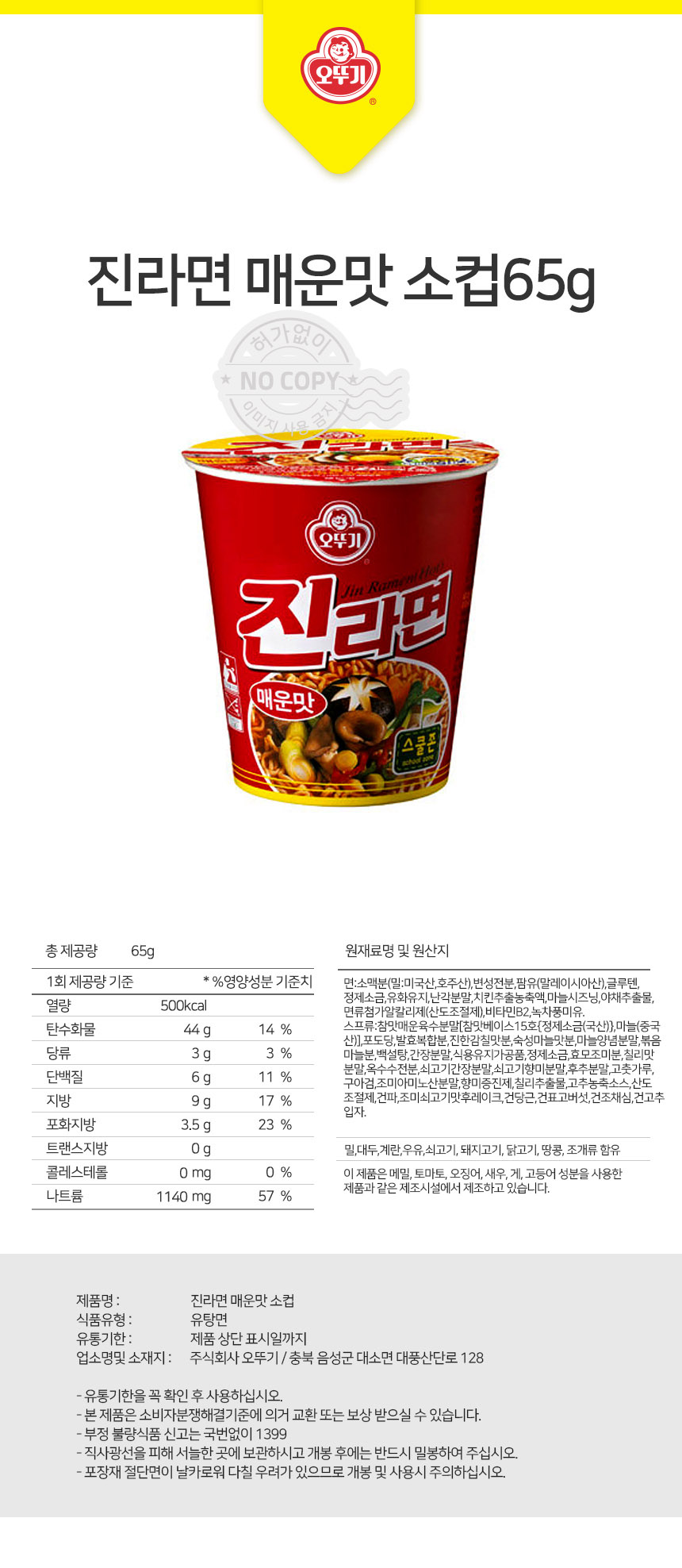 오뚜기 진라면 매운맛 소컵 65g