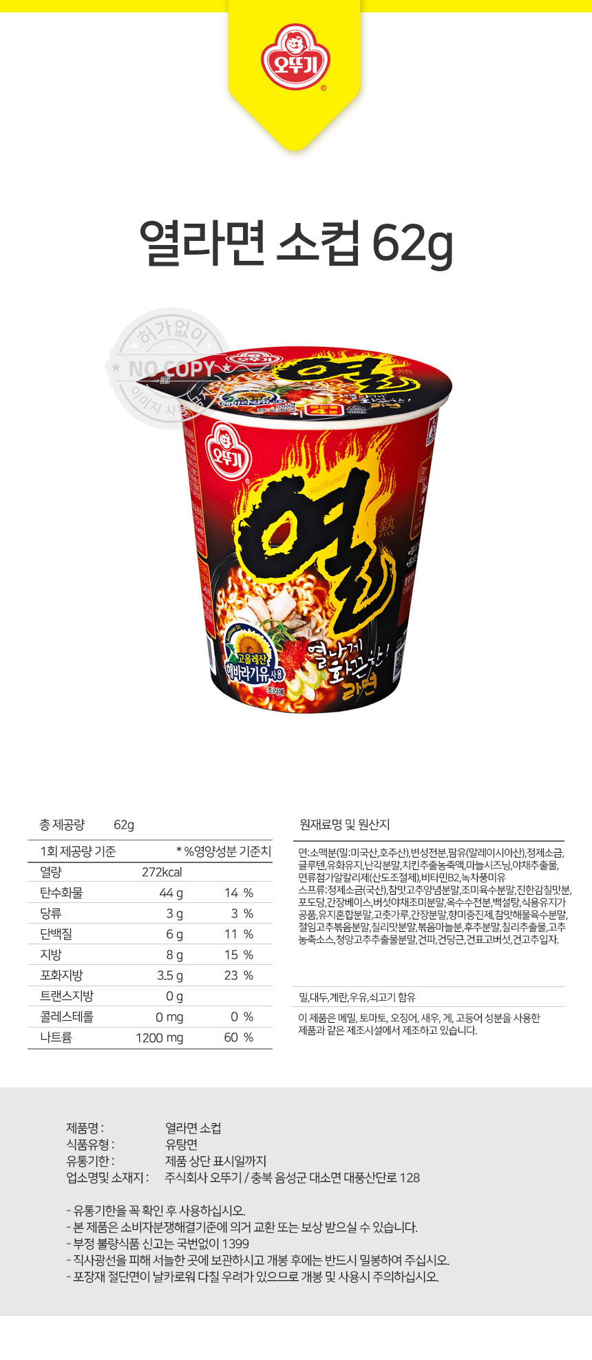 오뚜기 열라면 소컵 62g