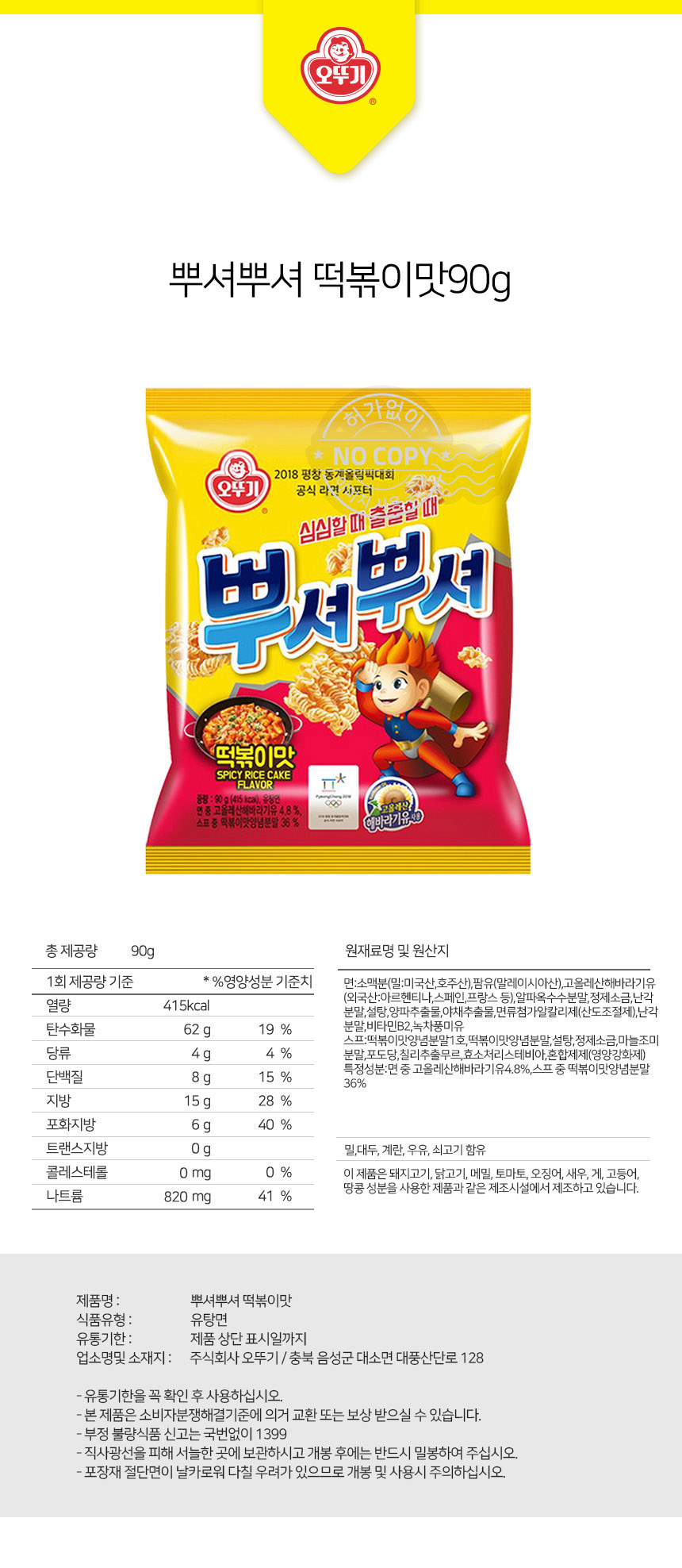 오뚜기 뿌셔뿌셔 떡볶이맛 90g