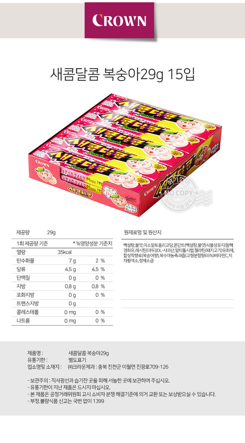 크라운 새콤달콤 복숭아 29g 15입